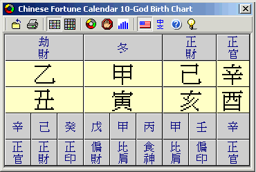 | Birth Chart in Graphic Symbols | Birth Chart in Chinese Characters |