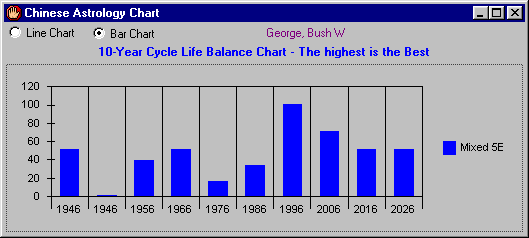 The Life Balance Chart shows George W. Bush 's best cycle is in the 1996-2005 cycle.