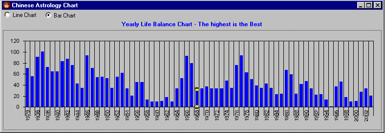The Life Balance Chart shows the 1965 major cycle of Martin Luther King has about the same luck as the year he was born in 1929.