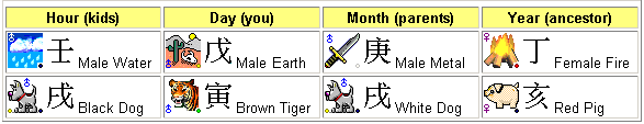 | Birth Chart in Graphic Symbols | Birth Chart in Chinese Characters |