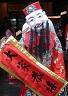 Kuan Yu was a general in Three Kingdom period, (2211-263 AD), after late Han Dynasty. He killed a bad guy and disguised himself with a red face when young. He helped his friend and tried to recover Han Dynasty. People remembered his brave and skillful in fighting, righteousness, loyalty to friends, faith and act of justice. But he ended with a beheaded general. After his death, his spirit wouldn't die and his divine image appeared on the sky several times. People worship General Kuan Yu to repel evil spirit away. Also, some Chinese treat General Kuan as a God of Wealth. This is because General Kuan won hundreds of battles and business people want to won the battle on the business deals.