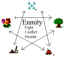 The enmity relationship means fighting, conflicting, rejecting, etc.